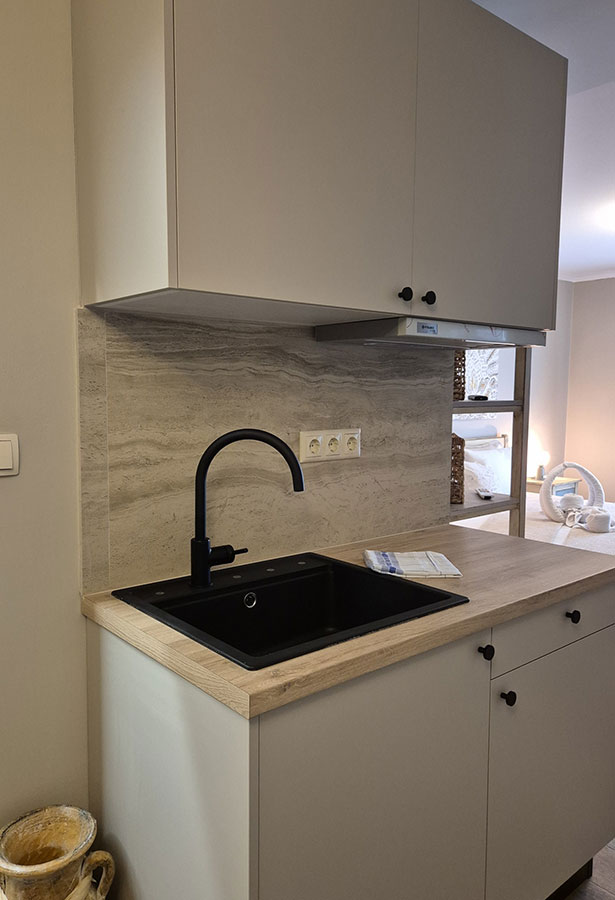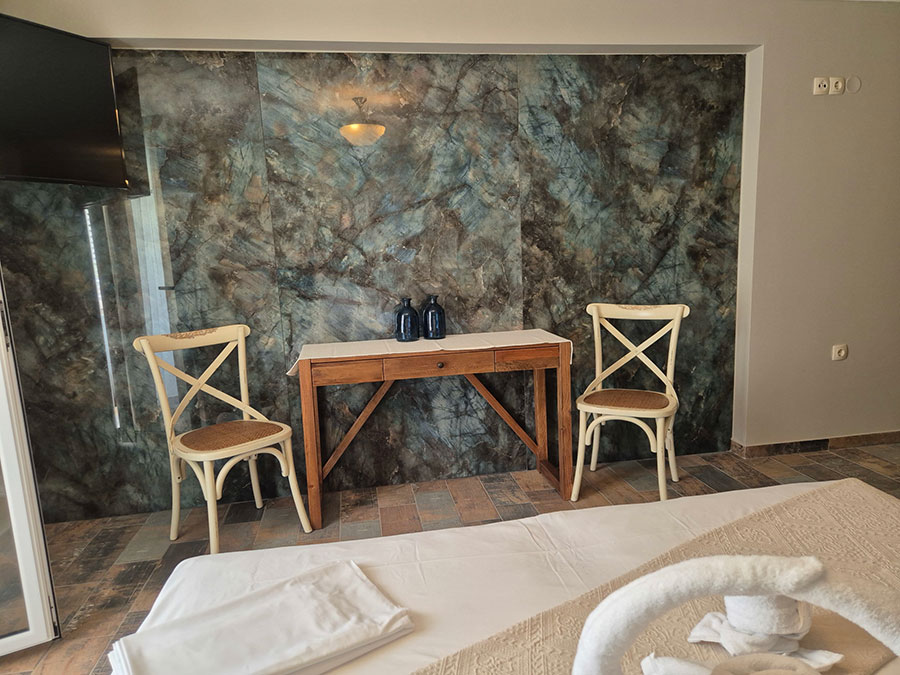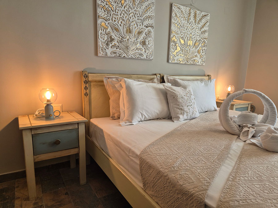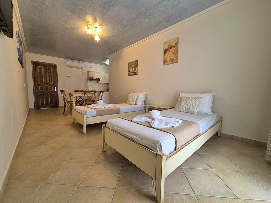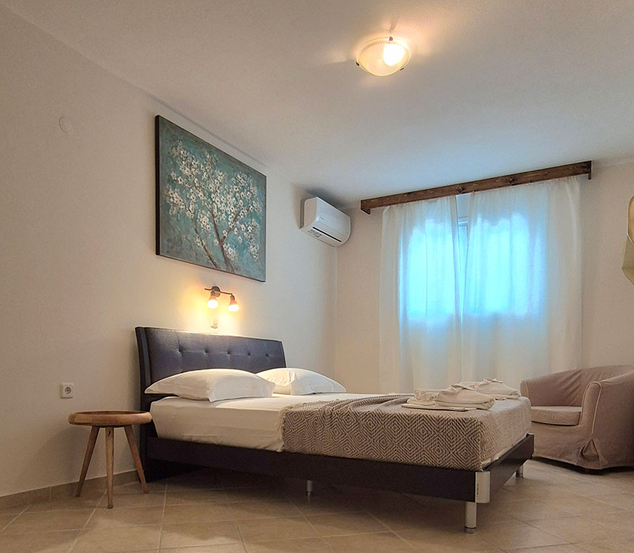 Τα 10 διαμερίσματα και τα 6 στούντιο του ξενοδοχείου είναι σχεδιασμένα να προσφέρουν ένα σκηνικό χαλάρωσης δίπλα στην φύση και το γαλάζιο του Ιονίου.